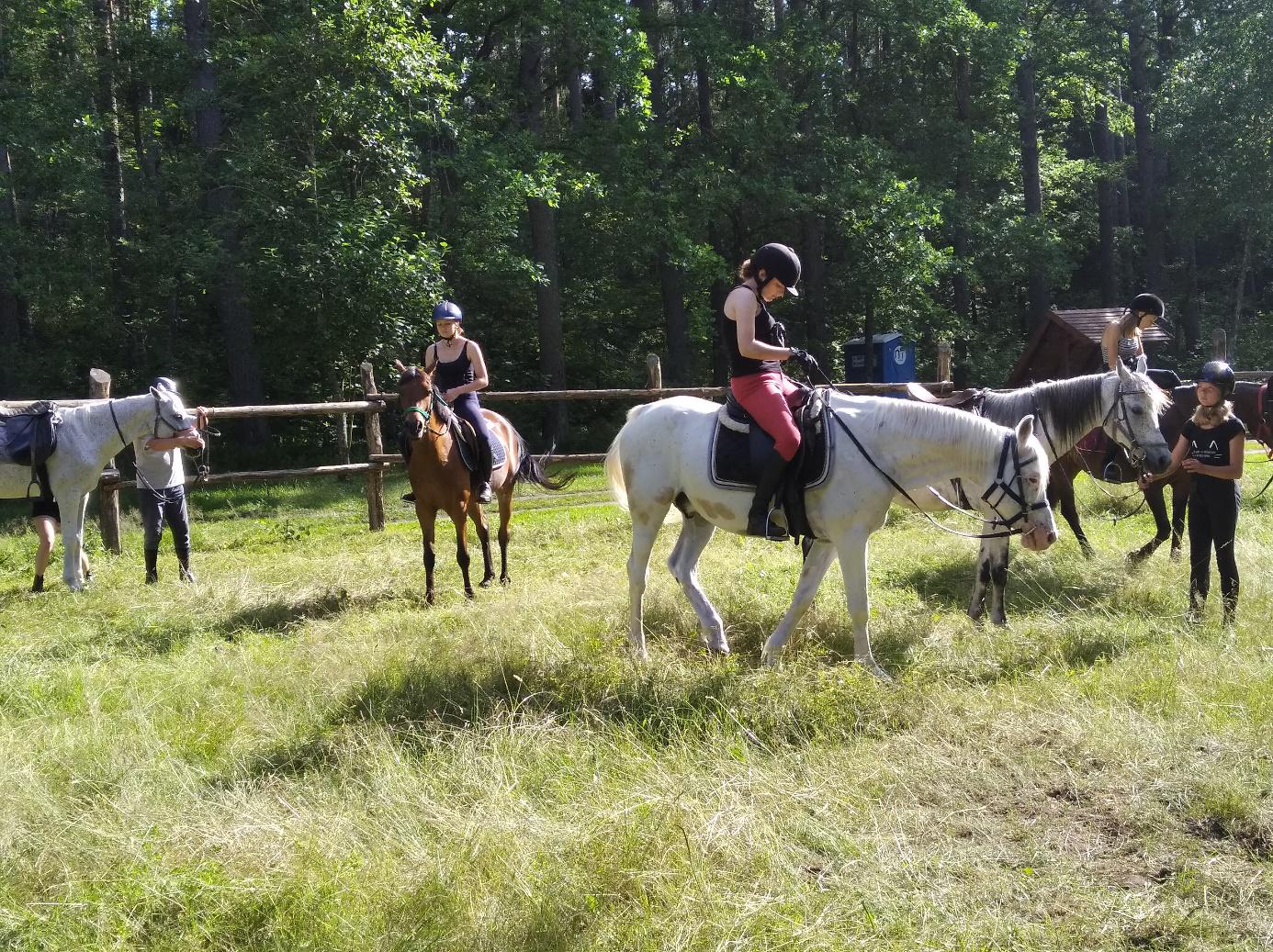 W okresie wakacyjnym, feryjnym i urlopowym zapraszamy dzieci, młodzież i dorosłych na tzw. „Wakacje w siodle”. Zapewniamy zakwaterowanie w nowo wyremontowanych pokojach dwu, trzy i czteroosobowych. Przyjmujemy tylko niewielkie grupy (do 10 osób) co pozwala nam wytworzyć miłą, rodzinną atmosferę. Turnusy rozpoczynają się w poniedziałki rano, a kończą w soboty wieczorem. W niedziele konie zażywają zasłużonego odpoczynku.