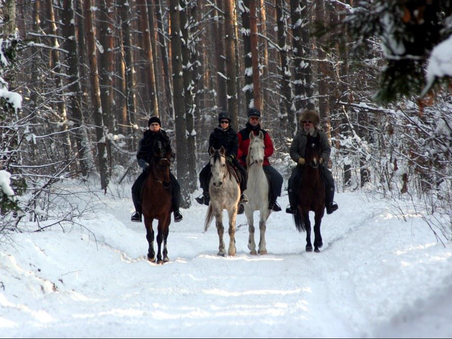 Długość tras i tempo dostosowujemy do chęci i możliwości rajdowiczów. Nasze konie czystej krwi arabskiej, tak jak my, uwielbiają powiew wiatru w grzywie i sosnowy zapach lasu. Po drodze pozdrawiamy napotkane sarny, jelenie, łosie bądź innych mieszkańców kniei.