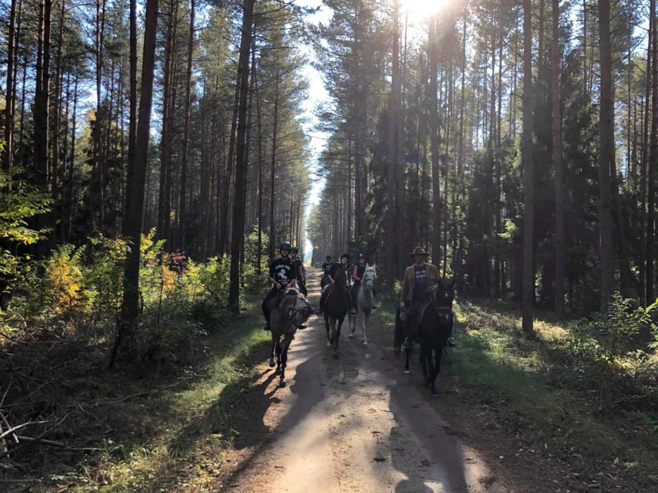 Poruszamy się wyznaczonym i oznakowanym szlakiem konnym Puszczy Augustowskiej i Mazur, który w całości liczy sobie około 400km – jedynym takim w Polce i Europie.