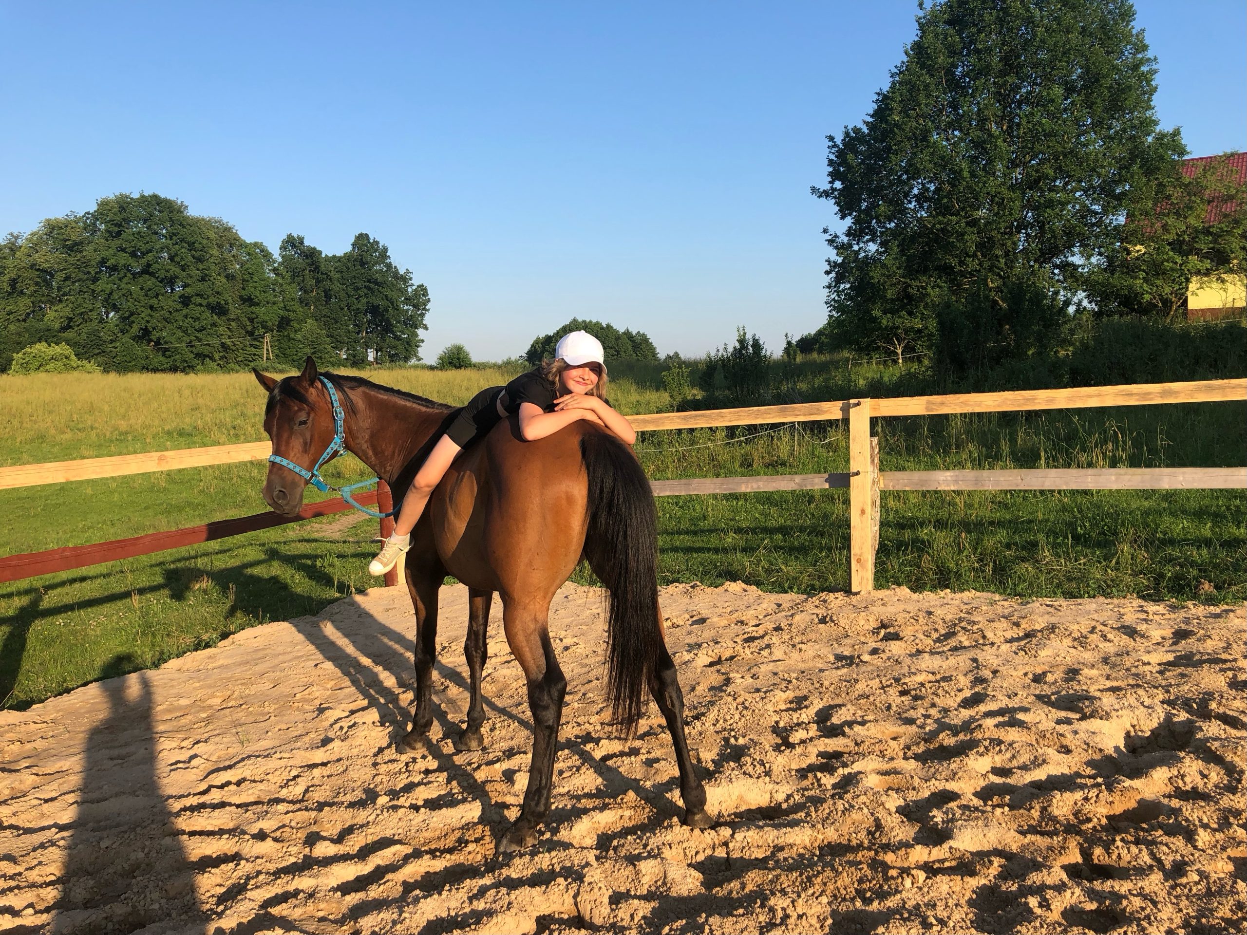 Każdego dnia odbywają się dwie godziny jazdy konnej na ujeżdżalni lub w terenie pod okiem wykwalifikowanych instruktorów. Teren może być połączony z pławieniem, jeśli będzie na to ochota. Dodatkowo prowadzimy zajęcia z ziemi i włączamy uczestników w codzienną pracę pielęgnacyjną przy koniach. Czas wolny wypełniamy zabawami i grami typu towarzysko – integracyjnymi oraz sportowymi. Organizujemy zajęcia i warsztaty artystyczne (okazjonalnie z zaprzyjaźnioną artystką – plastyk), a także plenery fotograficzne ( mamy ku temu przepiękne warunki przyrodnicze). Kiedy mamy na to ochotę, wieczory spędzamy przy ognisku, a upalne godziny dnia w hamakach, w naszym ulubionym lasanku.